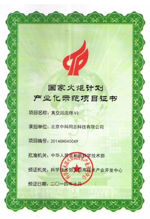 【真空回流焊機V3取得2014年中國電子裝備工業設計紅帆獎并取得國家火炬計劃示范項目證書】